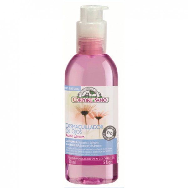 Gel desmaquillador de ojos Corpore Sano en textura gel con extractos de Caléndula y Camomila formulado con pH neutro, elimina de forma suave y eficaz el maquillaje de los ojos.